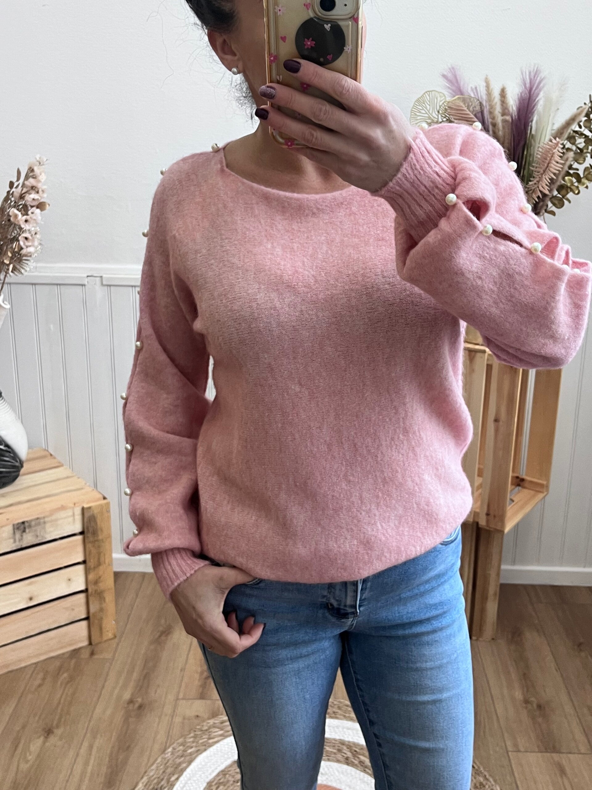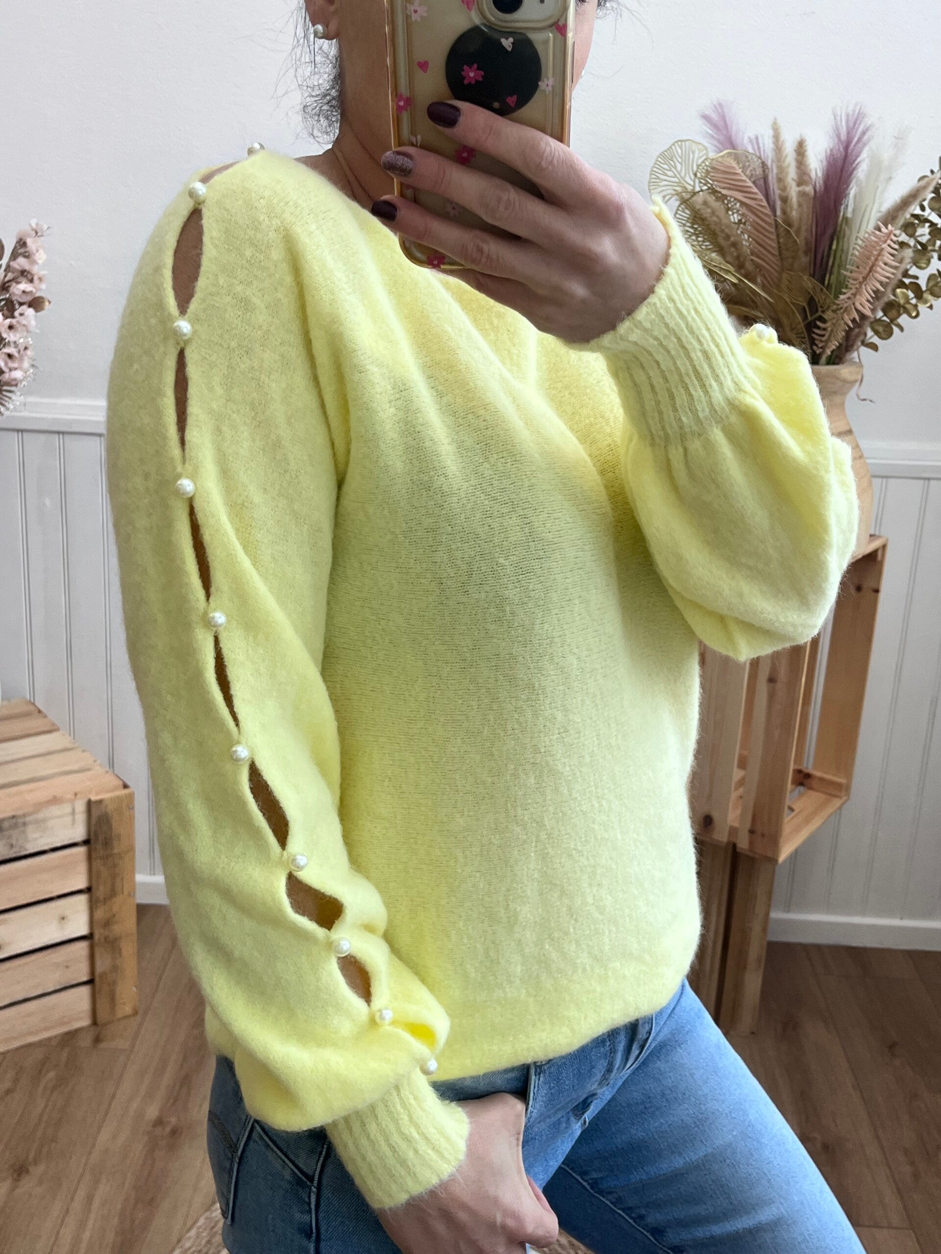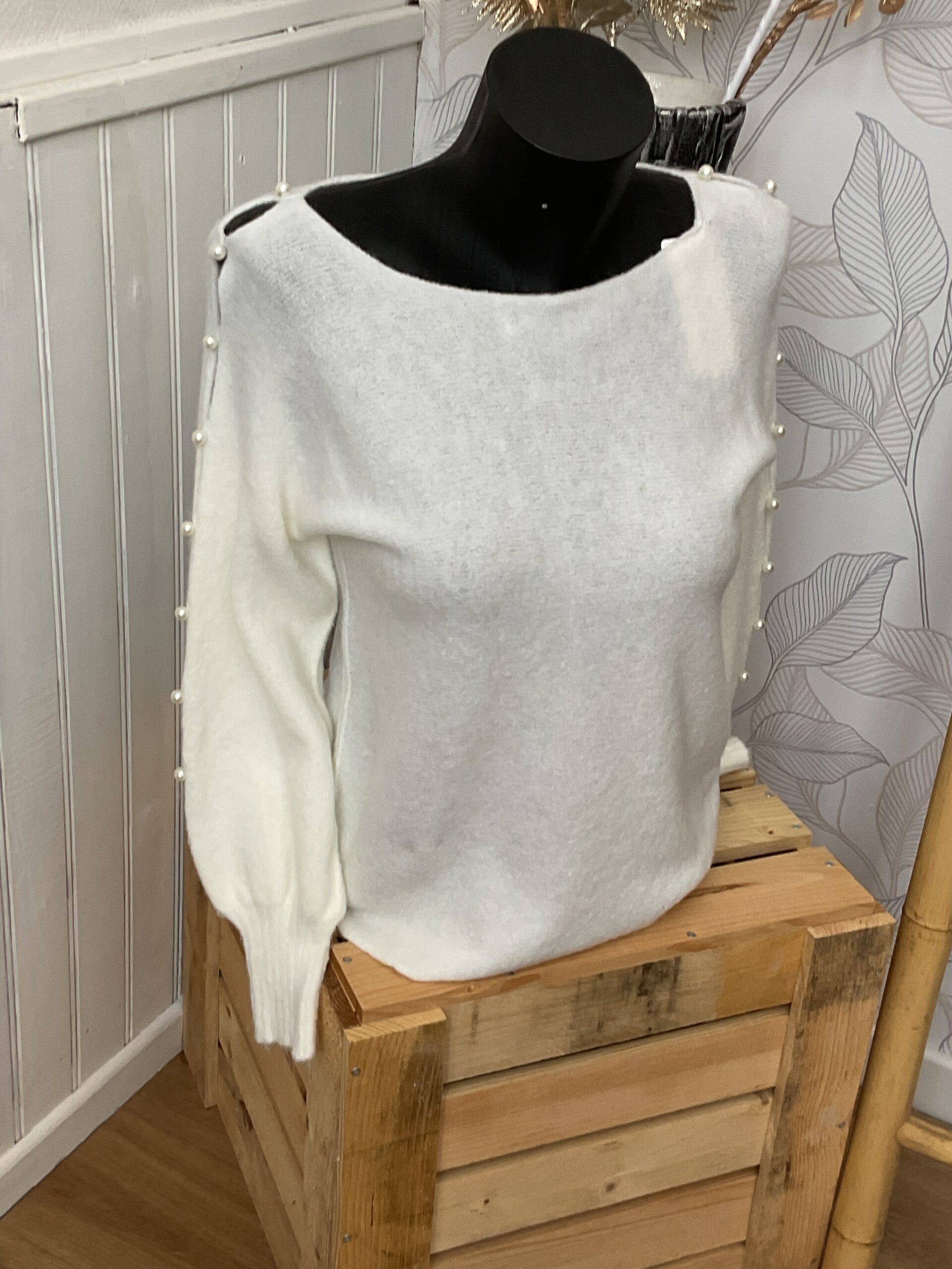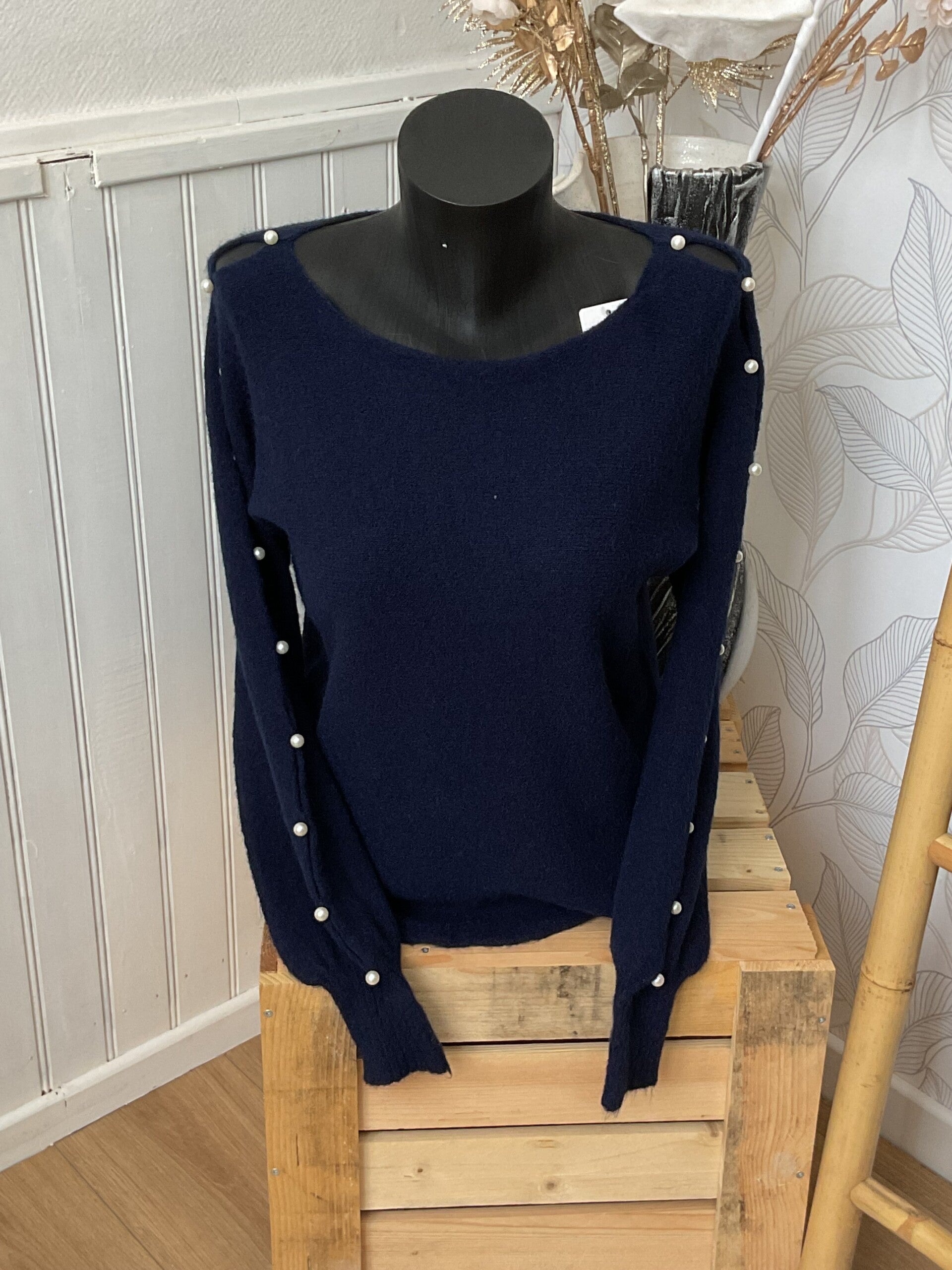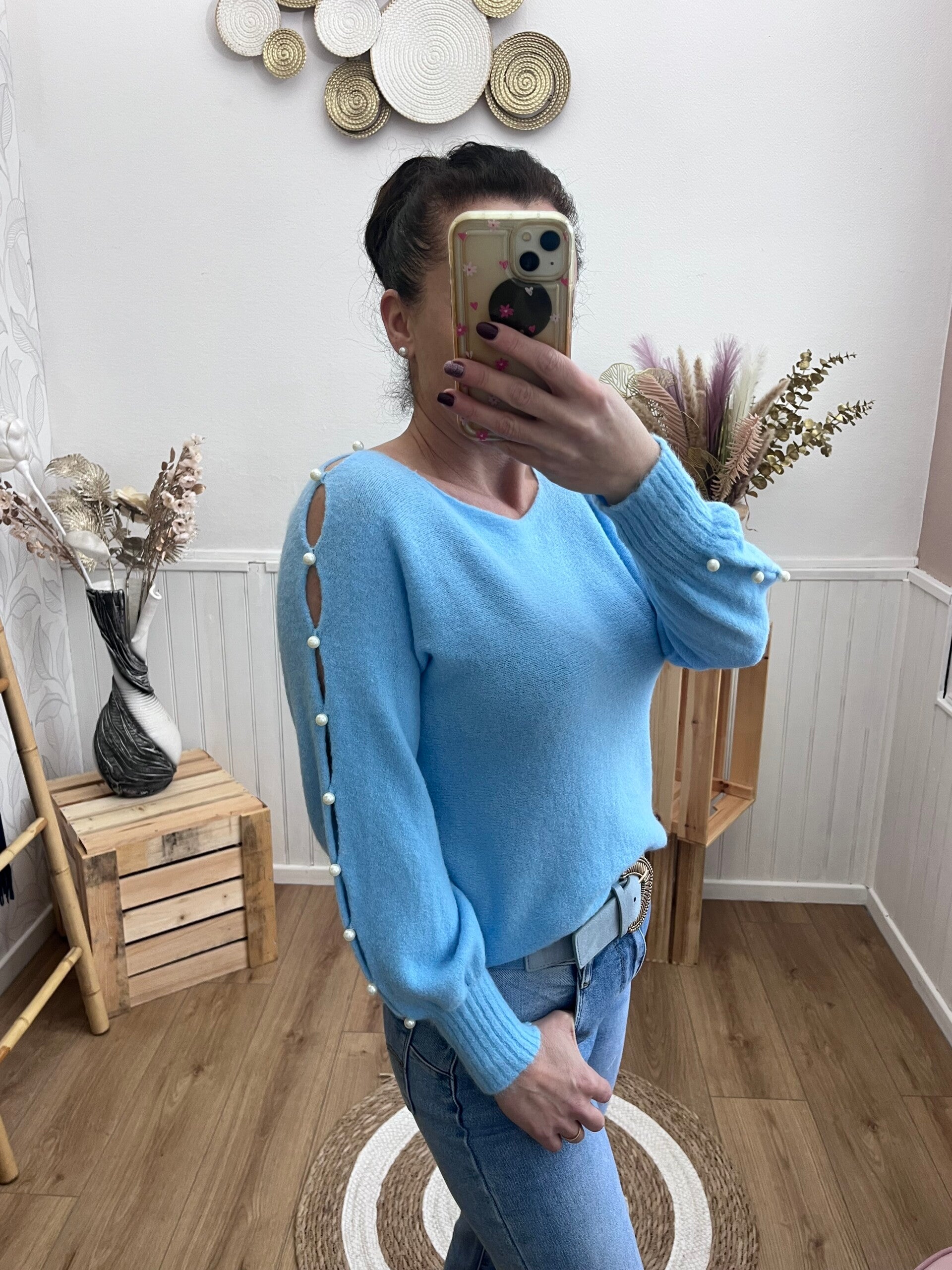sublime pull afgréable à porter avec ses magnifiques perles navrées au niveau des bras