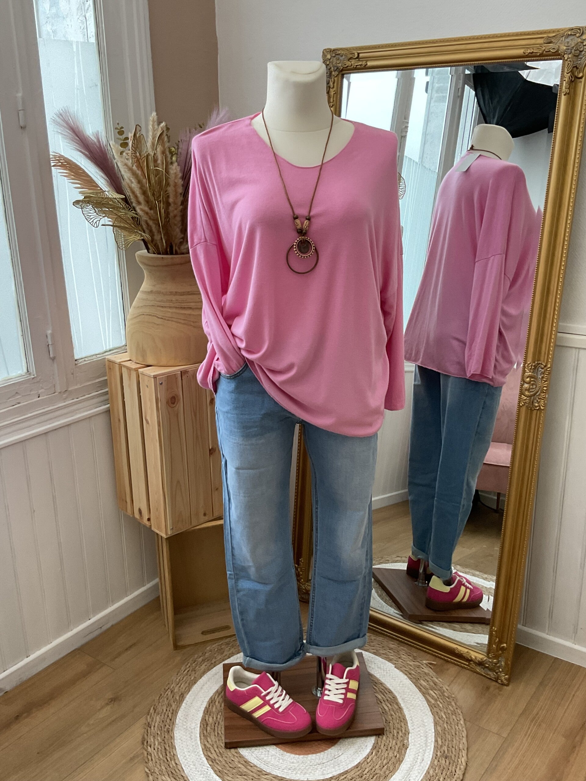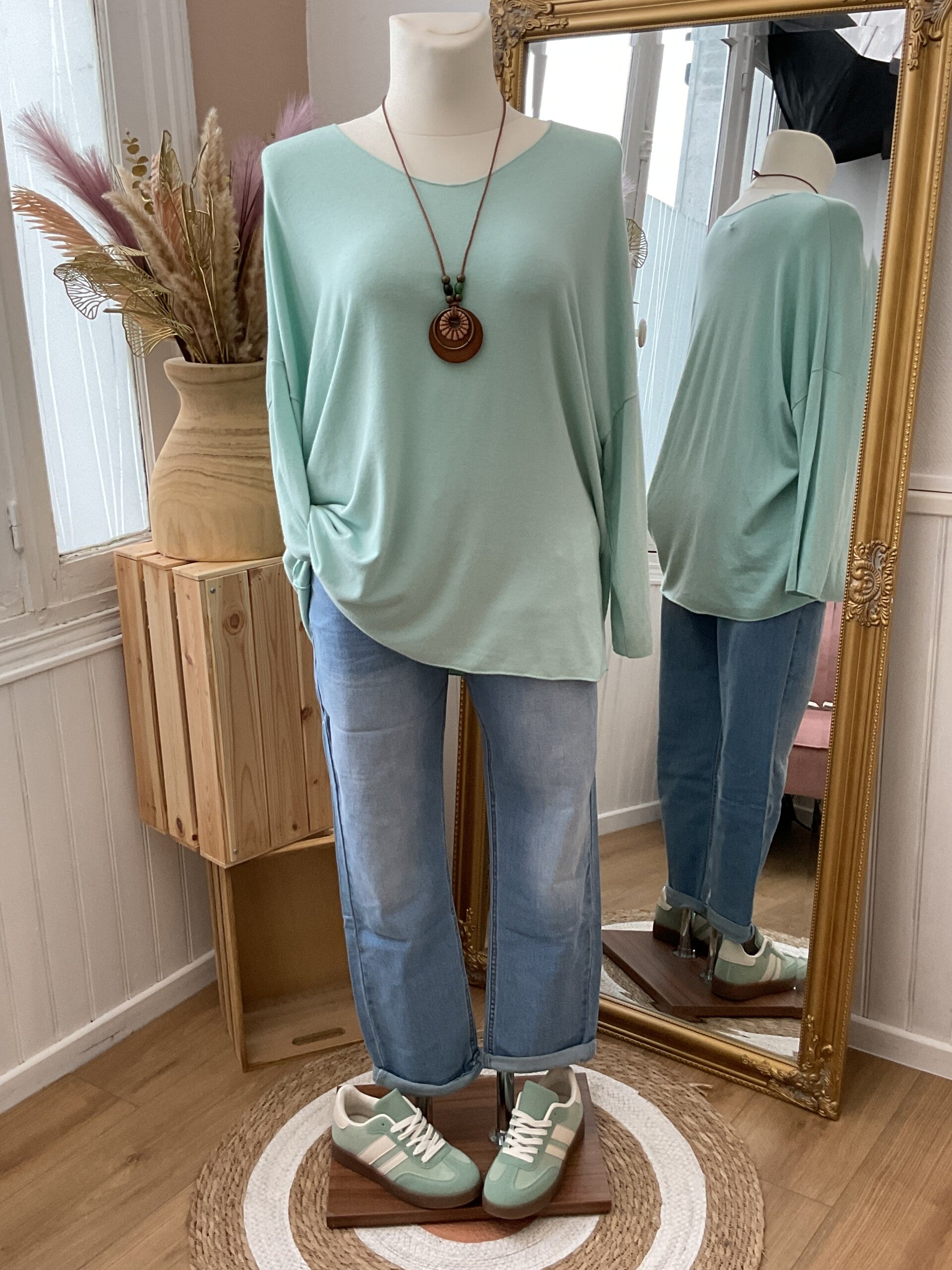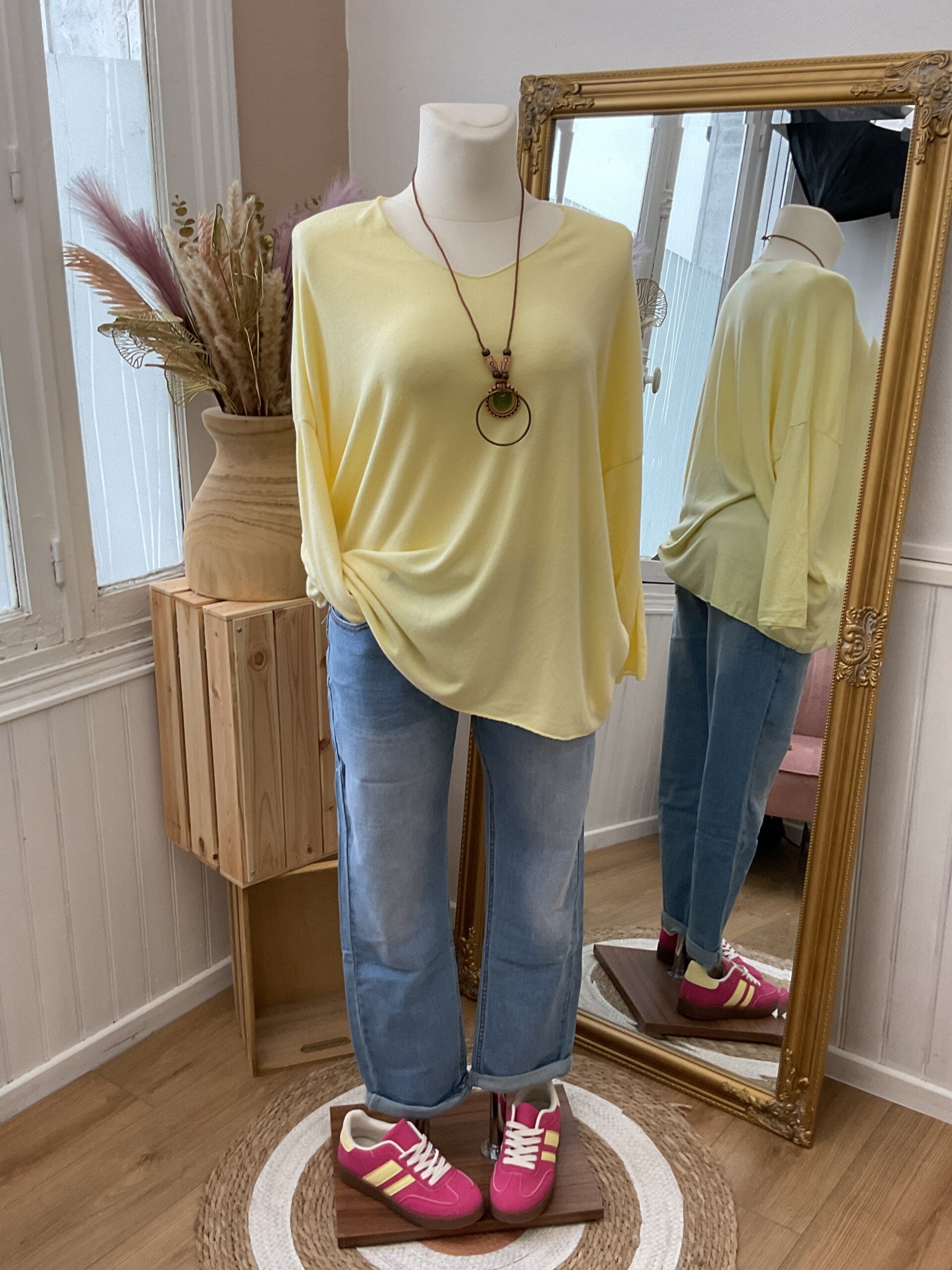 Jolie pull fin uni accompagné de son magnifique collier pour finir votre tenue